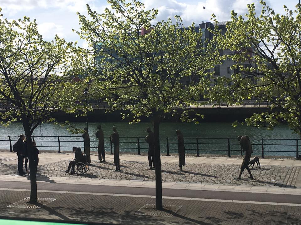 We opted for a sightseeing bus the next day, which is the ideal way to get a feel for a city, and some basic navigation around it. Along the route, we took in all the sights Dublin has to offer, including Trinity College, Ha’penny Bridge, and the Famine Memorial. Although this looks pretty against the blue sky and the blossoming trees, it obviously has a very sad but important meaning. It commemorates the event that has had the worst ever affect on Ireland: the Great Irish Famine (1845-49).